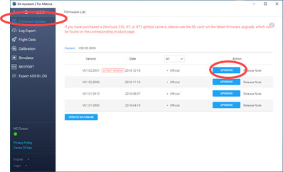 You must be on the latest version DJI Assistant 2 for Matrice. Failure to do so could cause issues.