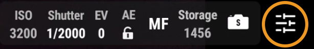 Click the three dots at the top of the menu to switch tabs and access more camera settings.