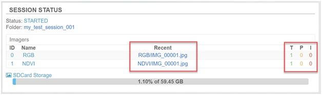 5. Check the Session Status section to verify the camera has taken an image.