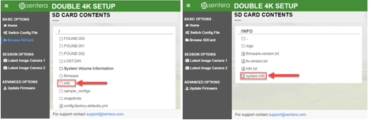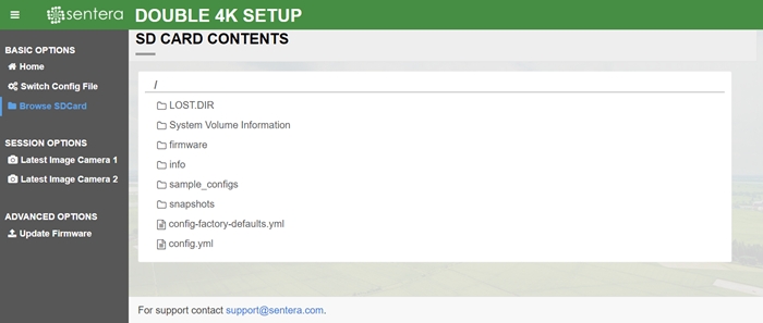 1. Connect to the Double 4K diagnostics page using the procedure at the top of this document. 2. Click on the Browse SDCard menu option.