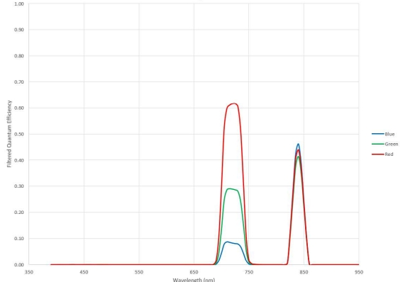 For the NIR/Red Edge camera, we have the following combined spectral response: