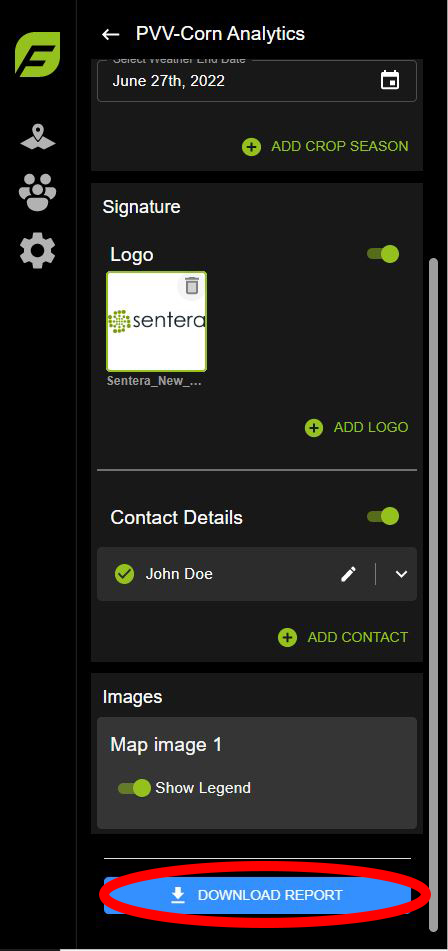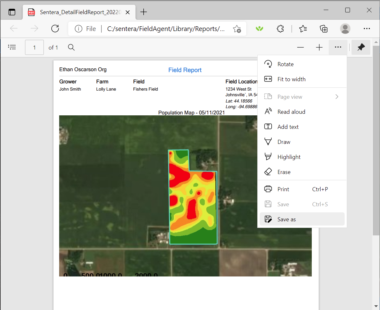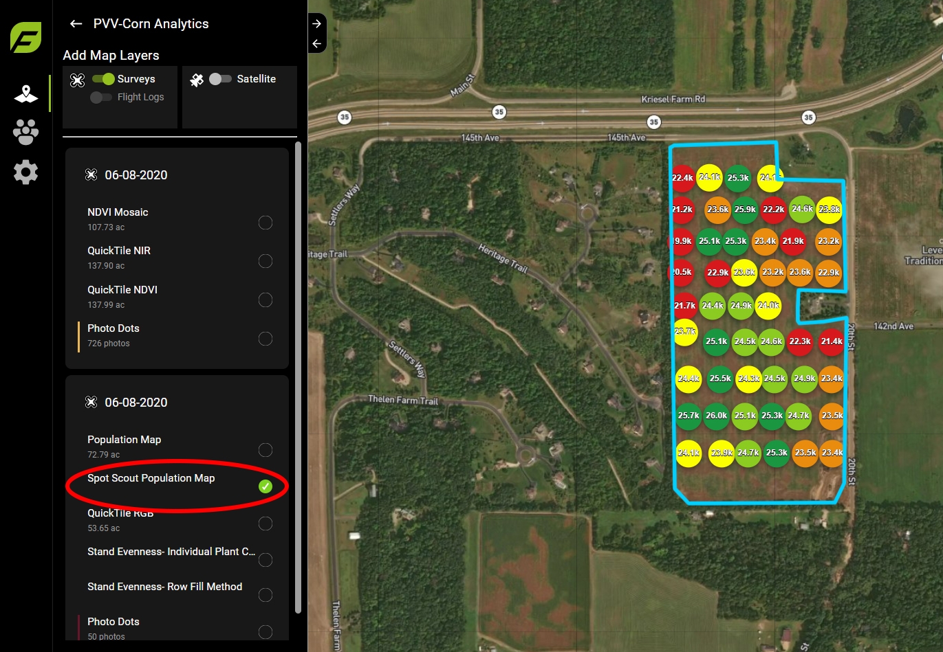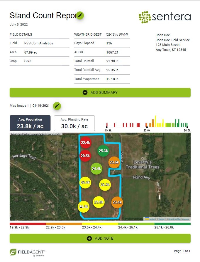 If a Spot Scout population map is selected, the report title is changed to Stand Count and planting rate and population is added