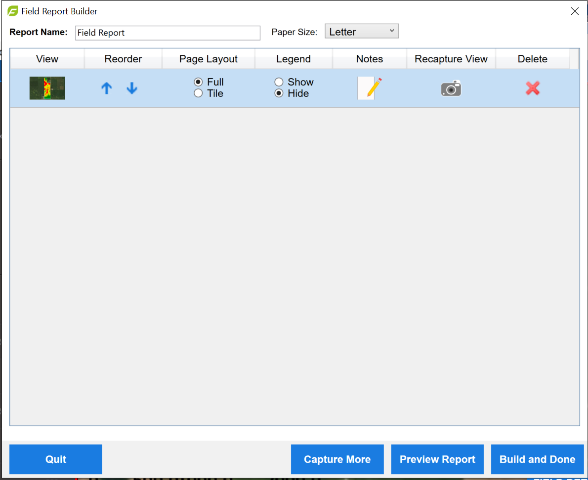 To generate a more detailed report, select Detailed Field Report when given the option. With this option selected you’ll be able to use the camera icon at the top of the screen or within a photo viewer to capture the images you’d like to include in the report.