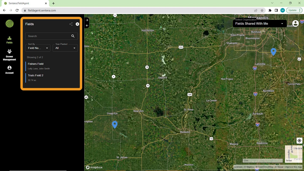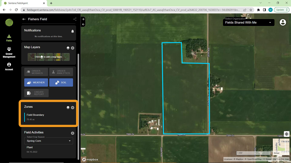 4. Change, delete, or add field boundaries with the tools on the right side of the screen.