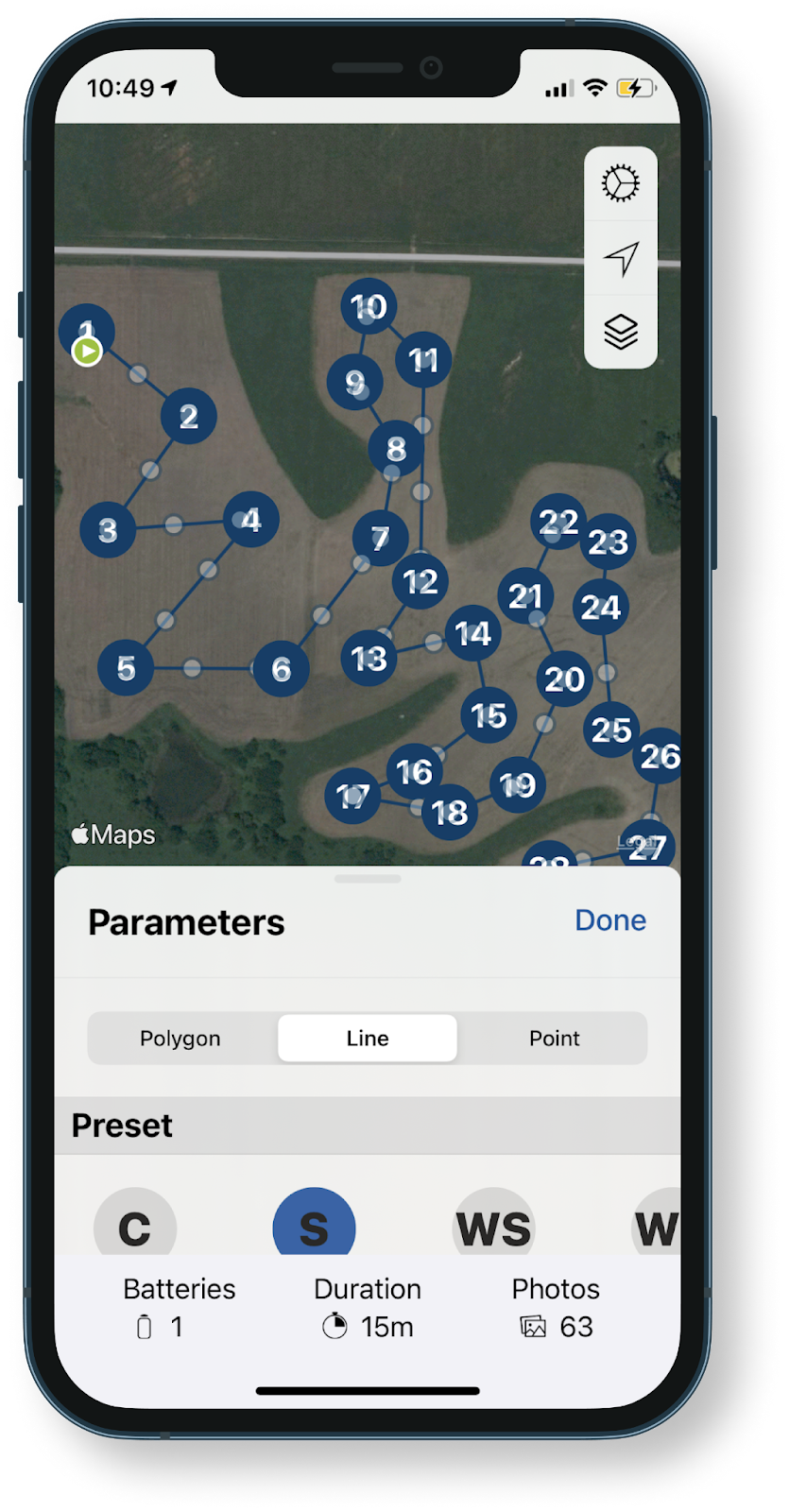 5. Ensure your drone’s altitude is safe for transit and move to another location on the field and capture another sample.