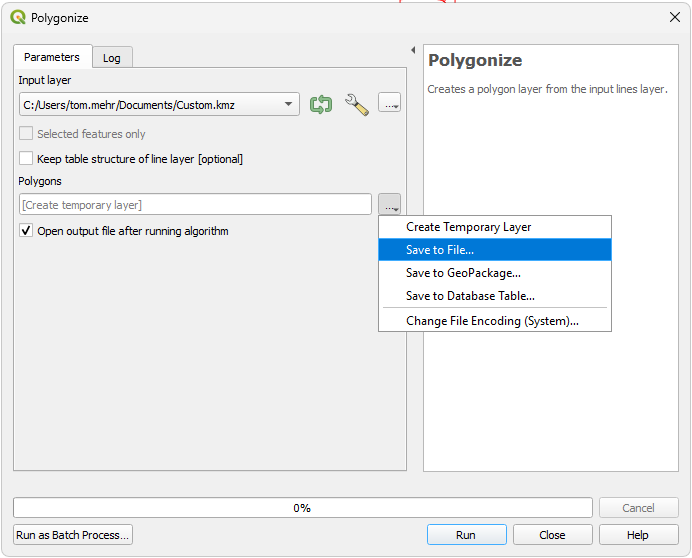In the Polygons click on the "..." button and select "Save to File...".