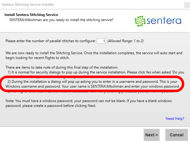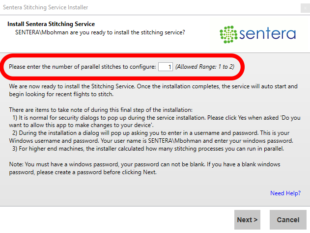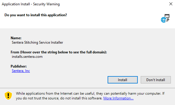 Sentera Stitching Service Installer must be able to make HTTP requests to api.sentera.com.