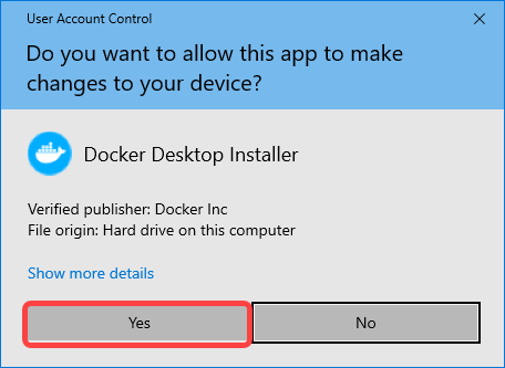 Once the download is complete, double-click Docker Desktop Installer.exe to start the install process.