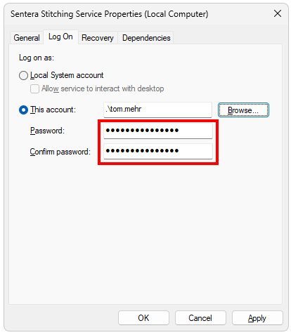 Type the new Windows password in both the Password and Confirm Password fields, as shown in Figure 38.
