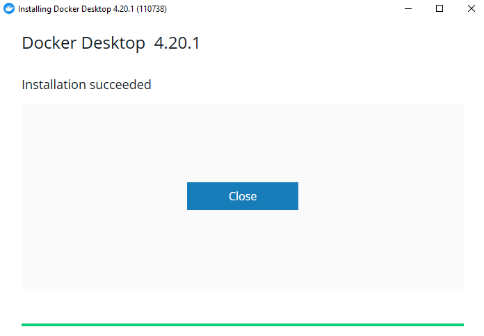 Click "Install Docker". The Docker Desktop Installer.exe file downloads. The file is quite large, and depending on the speed of your internet connection, it may take some time to download.
