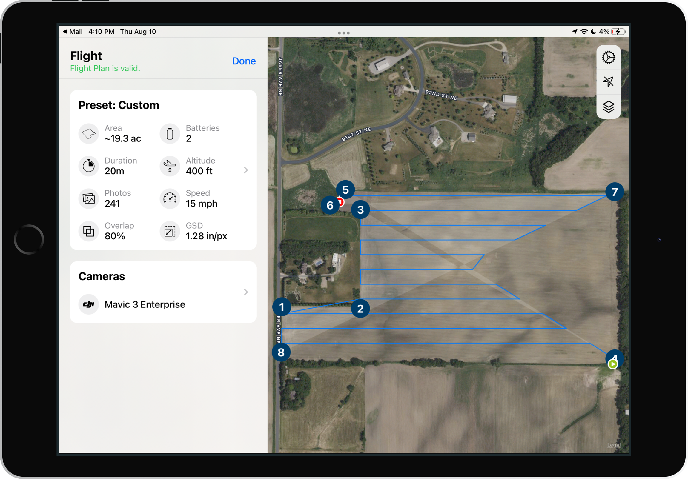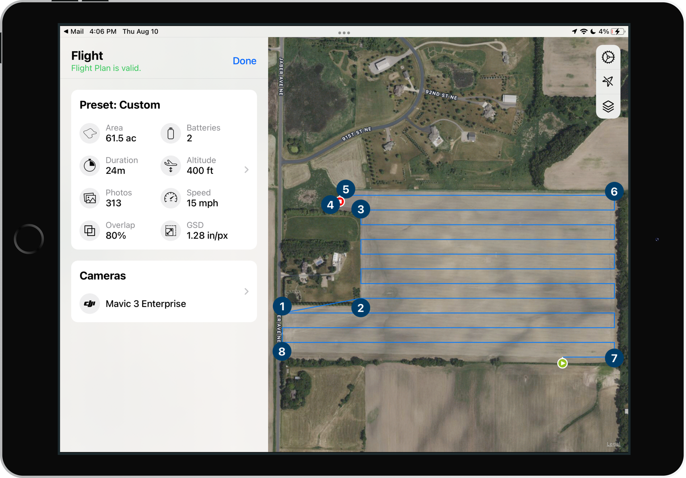 3. The CSV will open up as a flight plan over a new field.