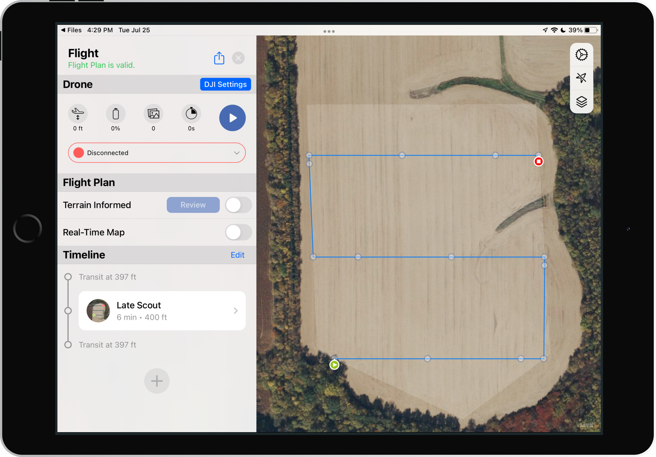 Note: Only the field boundary will be saved. Flight parameters will need to be reentered for future flights.