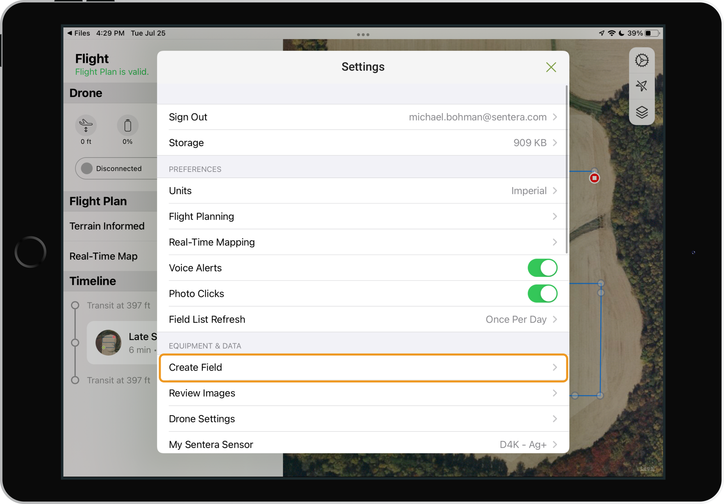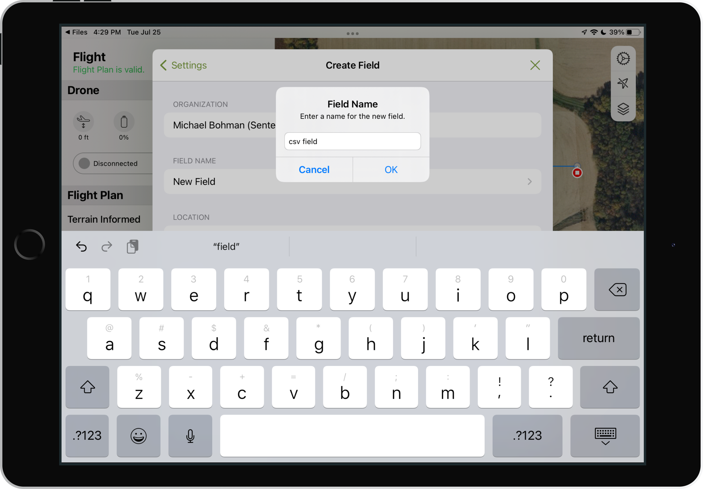 Create a field and flight plan with a CSV file