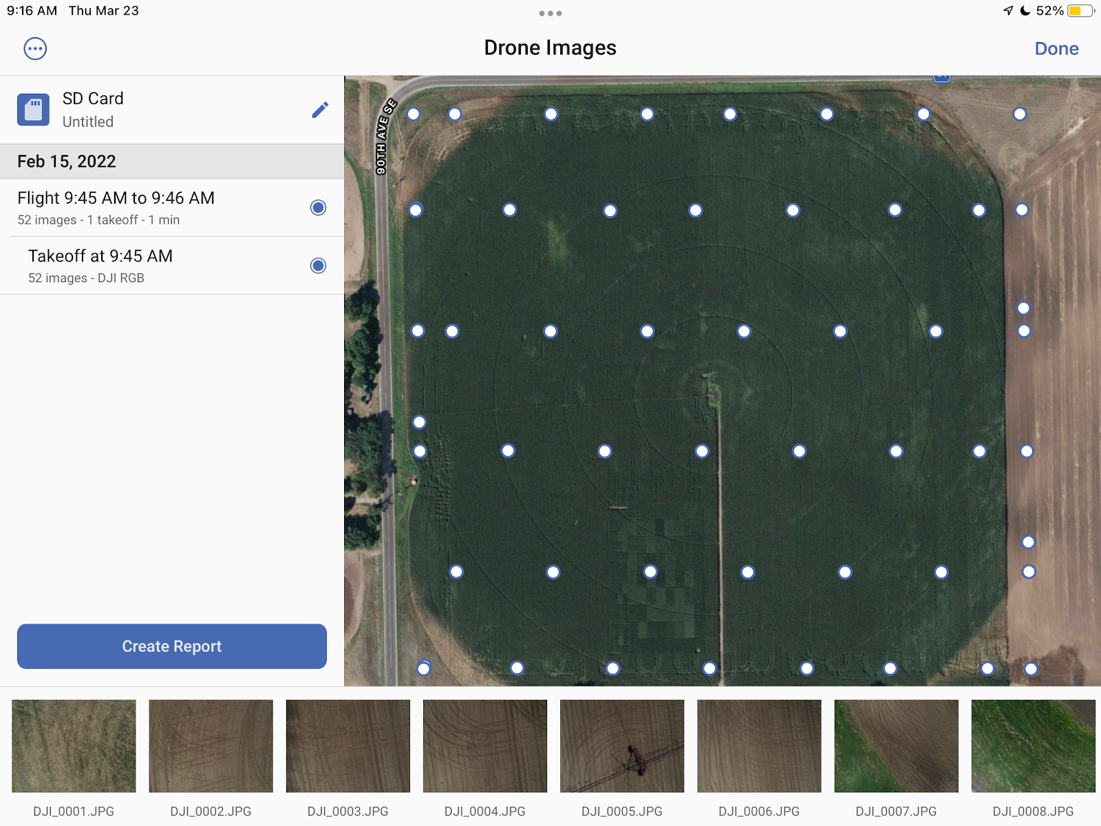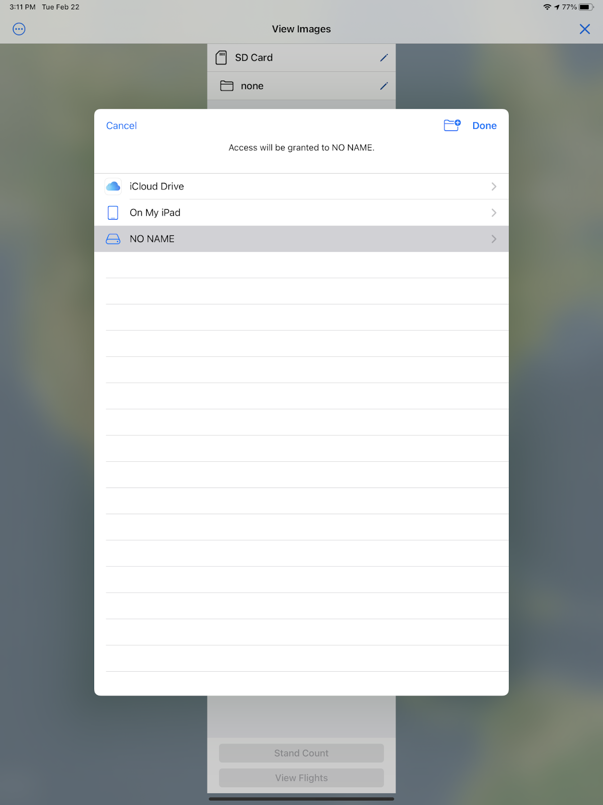 When prompted, select the SD Card in the finder window and then click Done . FieldAgent will automatically search the SD Card for flights. Flights will be organized by date and time with the most recent flights on top.