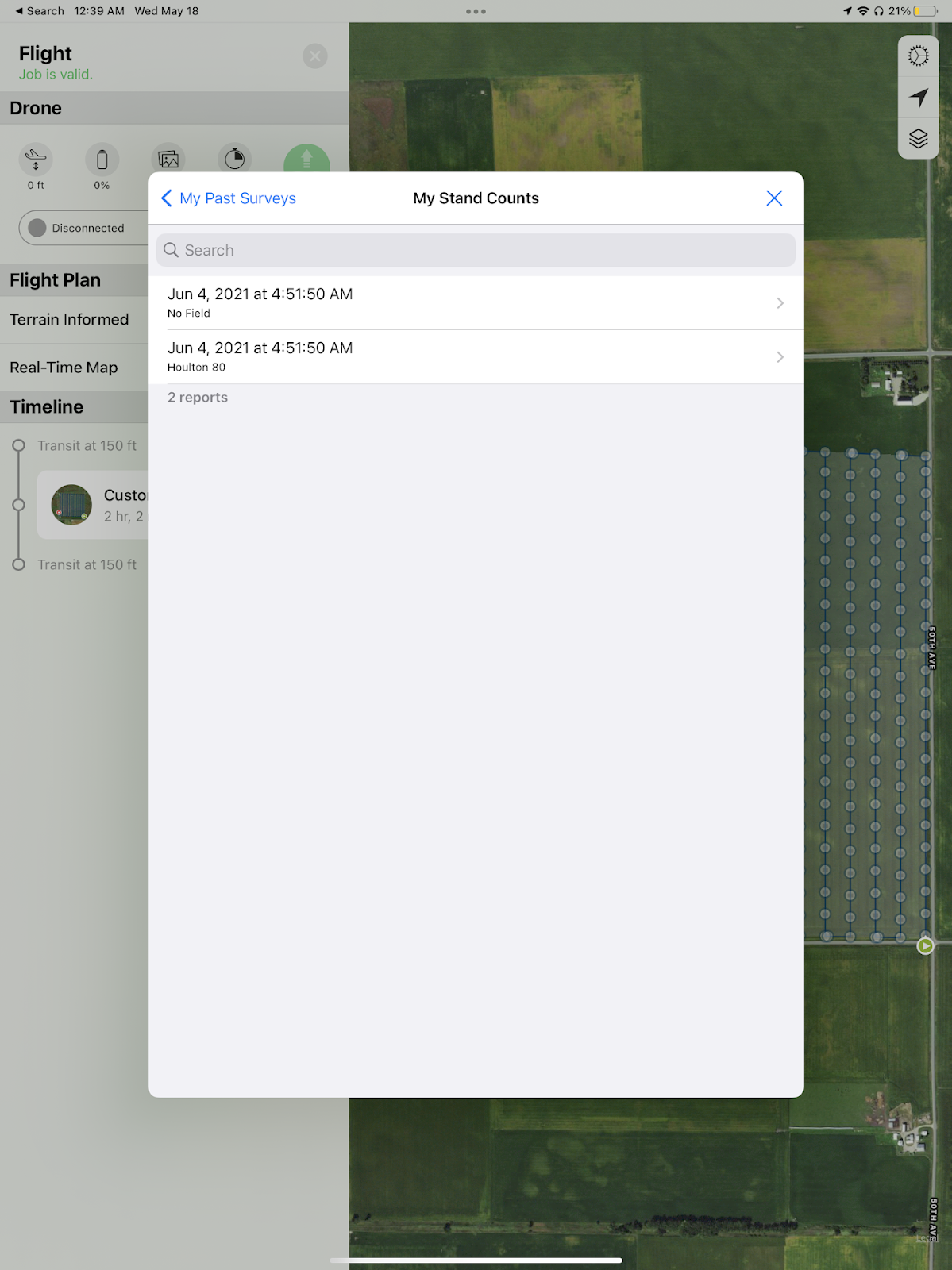 When flying over non-flat terrain, Terrain Informed Flight Planning should be turned on as well. Note that while processing Mobile Stand Counts does not require an internet connection, planning a terrain informed flight DOES require an internet connection.