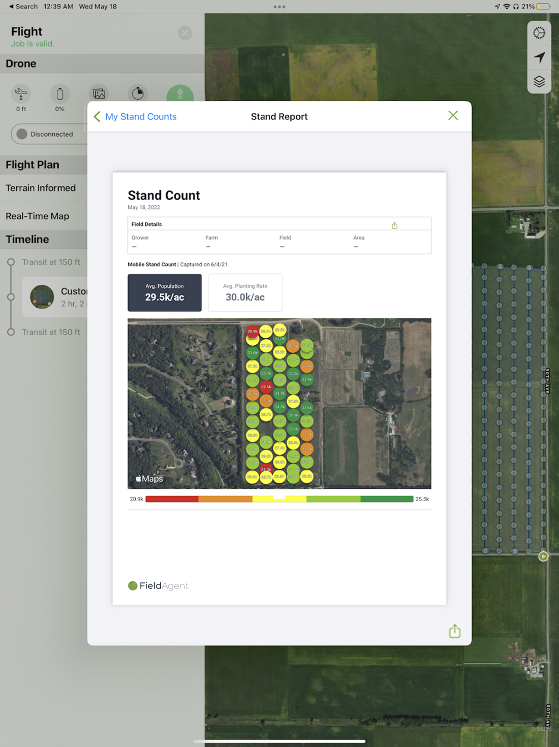 The Mobile Stand Count feature for FieldAgent Mobile (iOS app) is intended for quickly processing shareable Stand Count results from the field’s edge. The video below shows it populating in real time:
