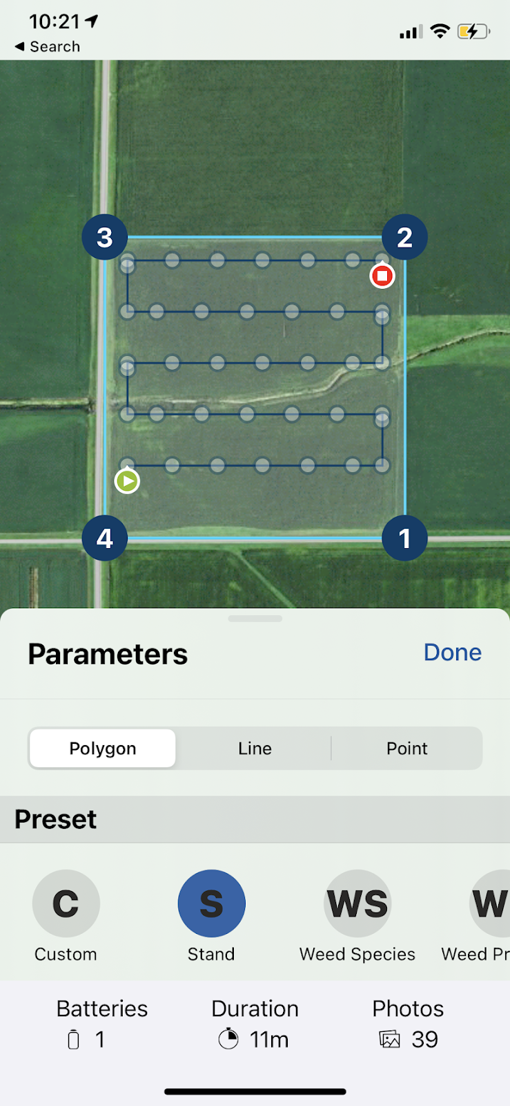 Choose the Stand preset. This will set the correct altitude for your camera and set the overlap to capture at ~1 stand count per acre.