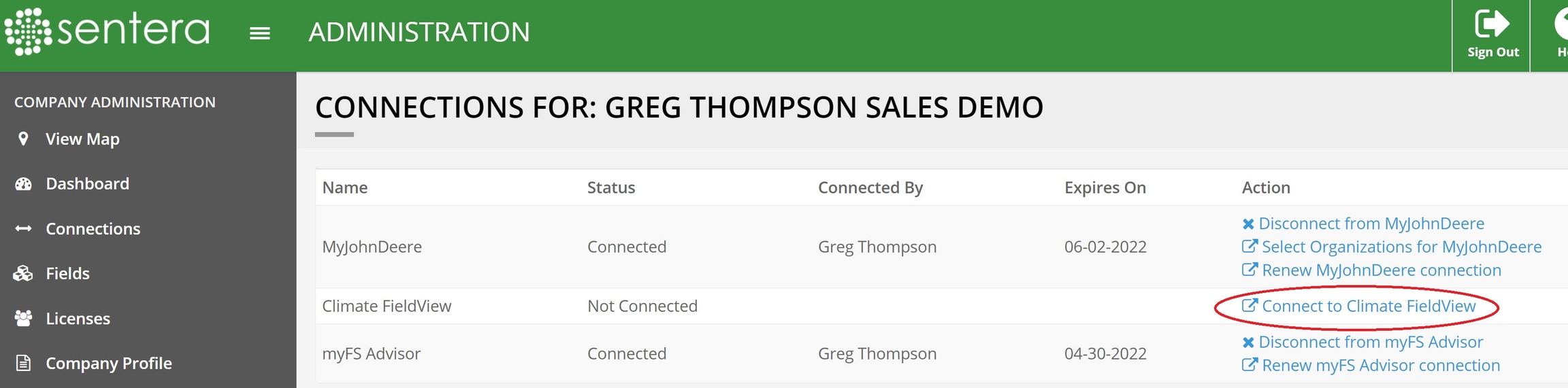 Select Renew Climate FieldView Connection.