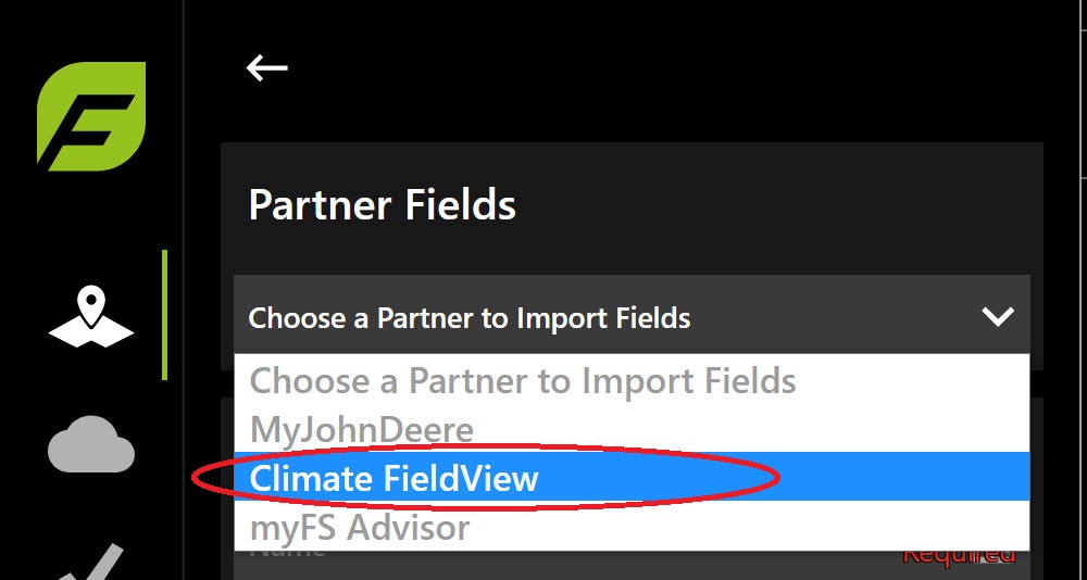 Select Climate FieldView from the Choose a Partner to Import Fields dropdown list.
