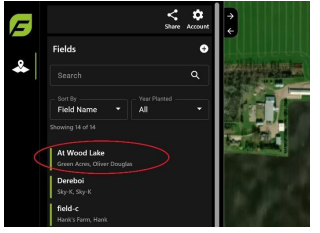 FieldAgent Web App lists all fields that are available under your User ID.