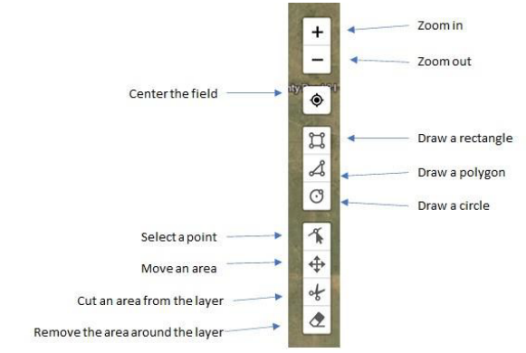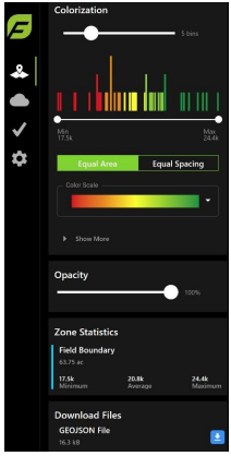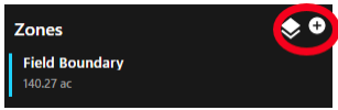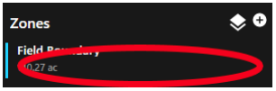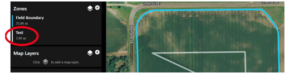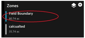 Zones allow the user to turn on and off field boundaries, create additional boundaries, or add shapes to the field.