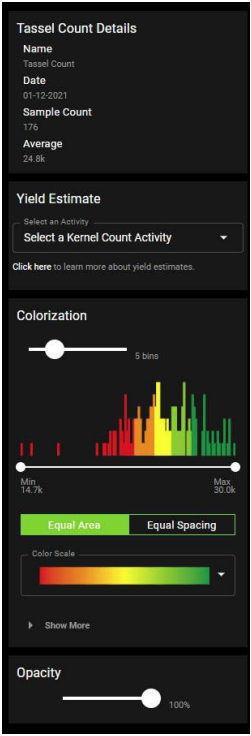 From the Yield Estimate area, select a kernel count activity, as shown in Figure 72.