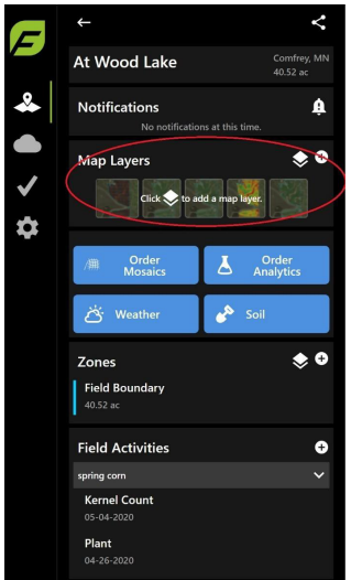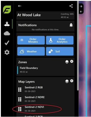 Map Layers allow the user to view images imported into FieldAgent Web App from the Sensor, Drone, or Satellite data. This section describes how to navigate the map layers.