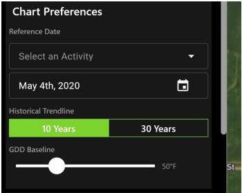 Use the slider bar to set your Growing Degree Days Baseline temperature.