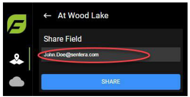 Enter the email address to share to, as shown in Figure 75. You can also share the field to yourself, at which point you can see mosaics, tassel counts, and create PDF reports.