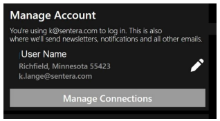 Users of FieldAgent Web App can manage the account by selecting the pencil icon or Manage Account button, as shown in Figure 5. If you have access to manage accounts, click Manage Connections and update the information.