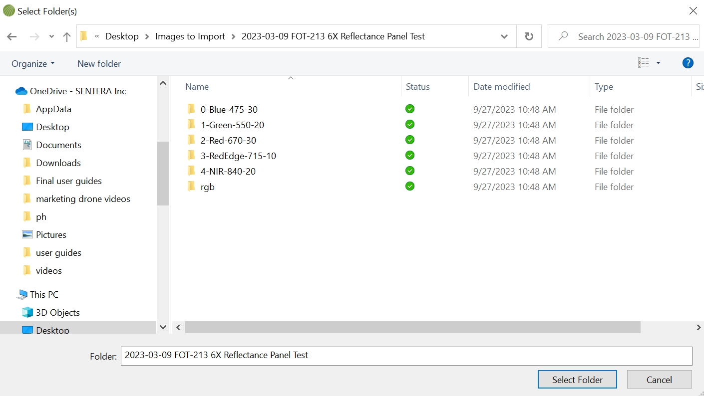NOTE: FieldAgent Desktop will look for images two subfolder levels deep. This means you can select a folder which contains folders full of images. If your imagery did not load after clicking SELECT FOLDER, check that your subfolders contains images.