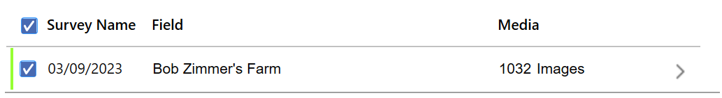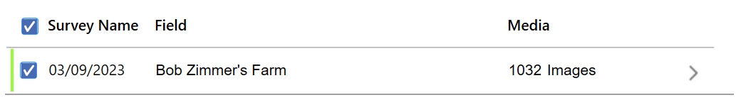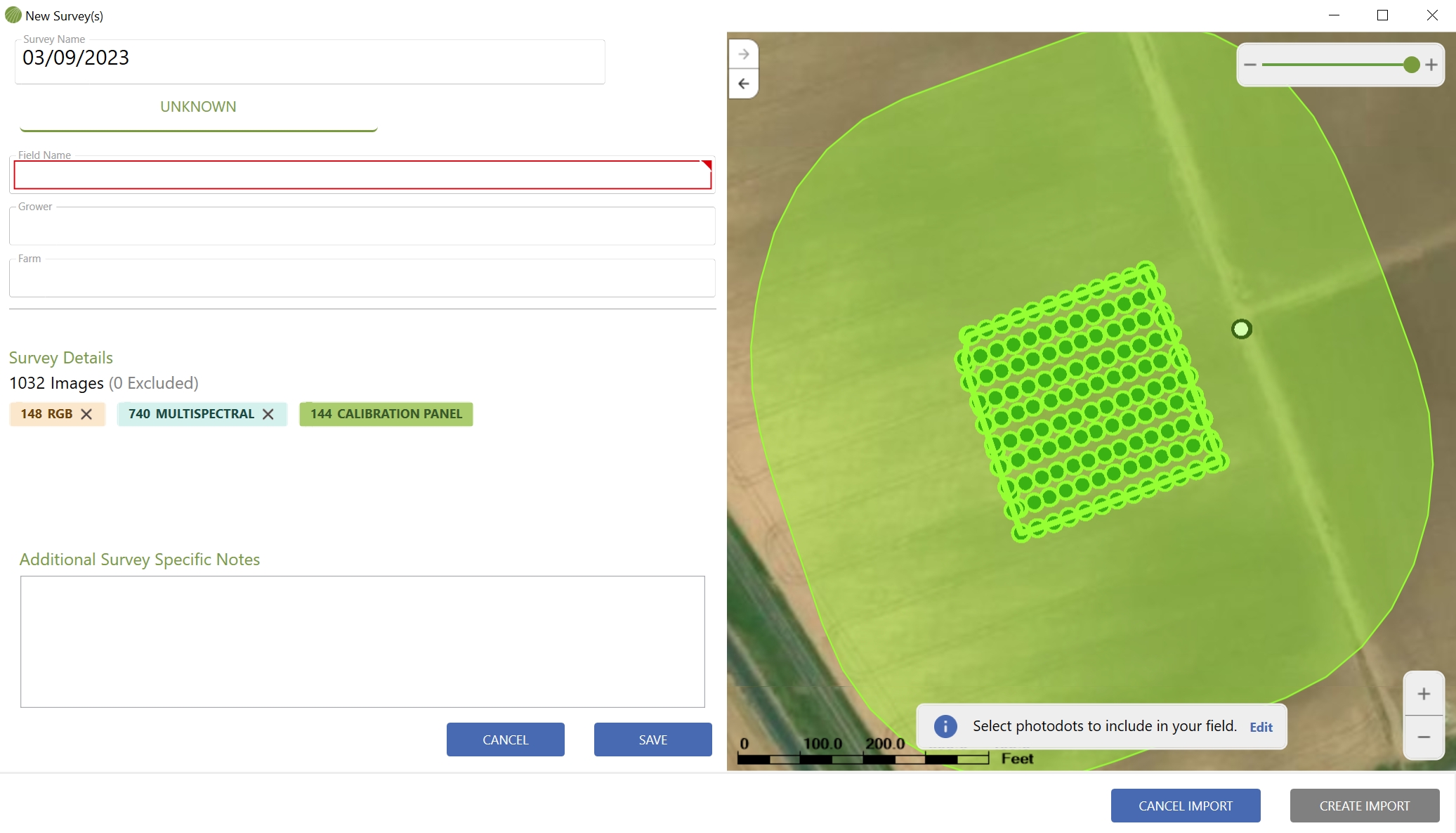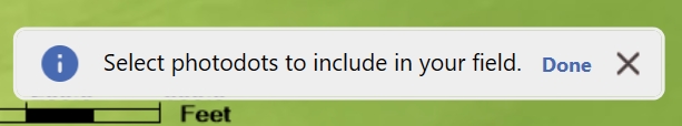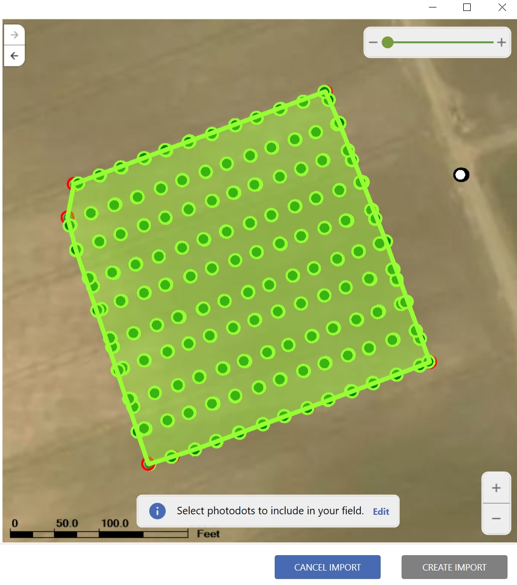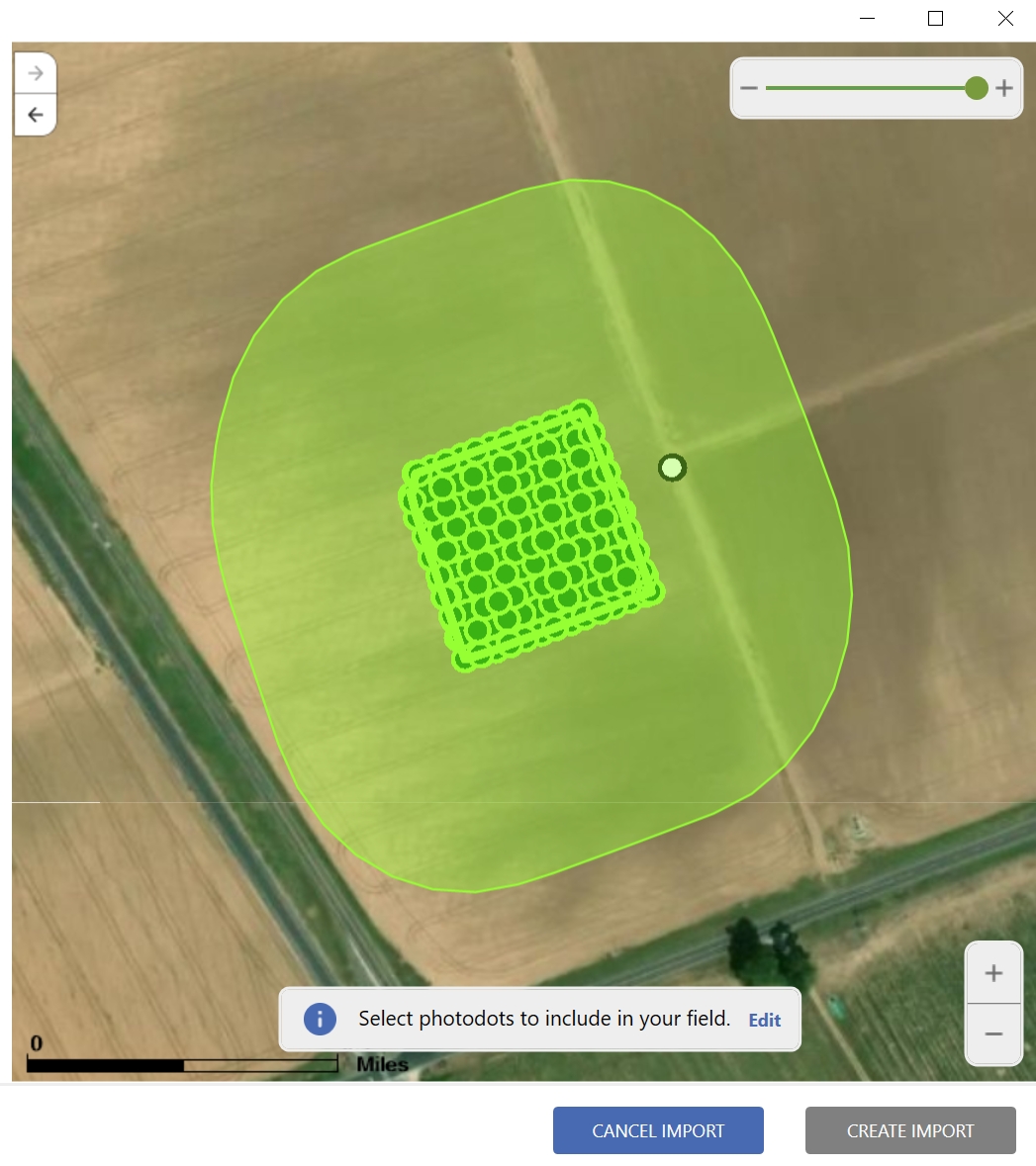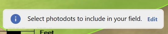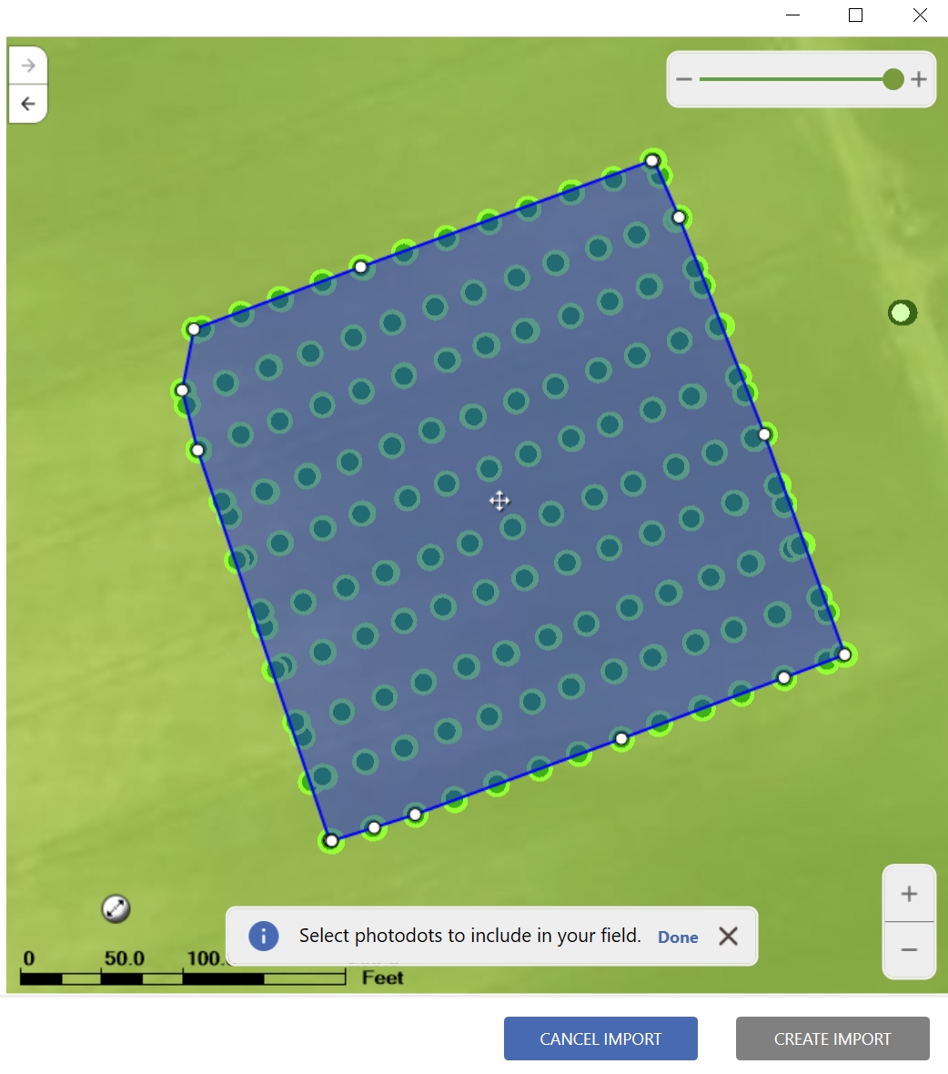 NOTE: The image select buffer is shown by the shaded area around the field boundary. The buffer can be between 0 ft and 300 ft. By Default, its set to 300ft which means that any image dot within 300 ft of the field boundary will be included in this survey.