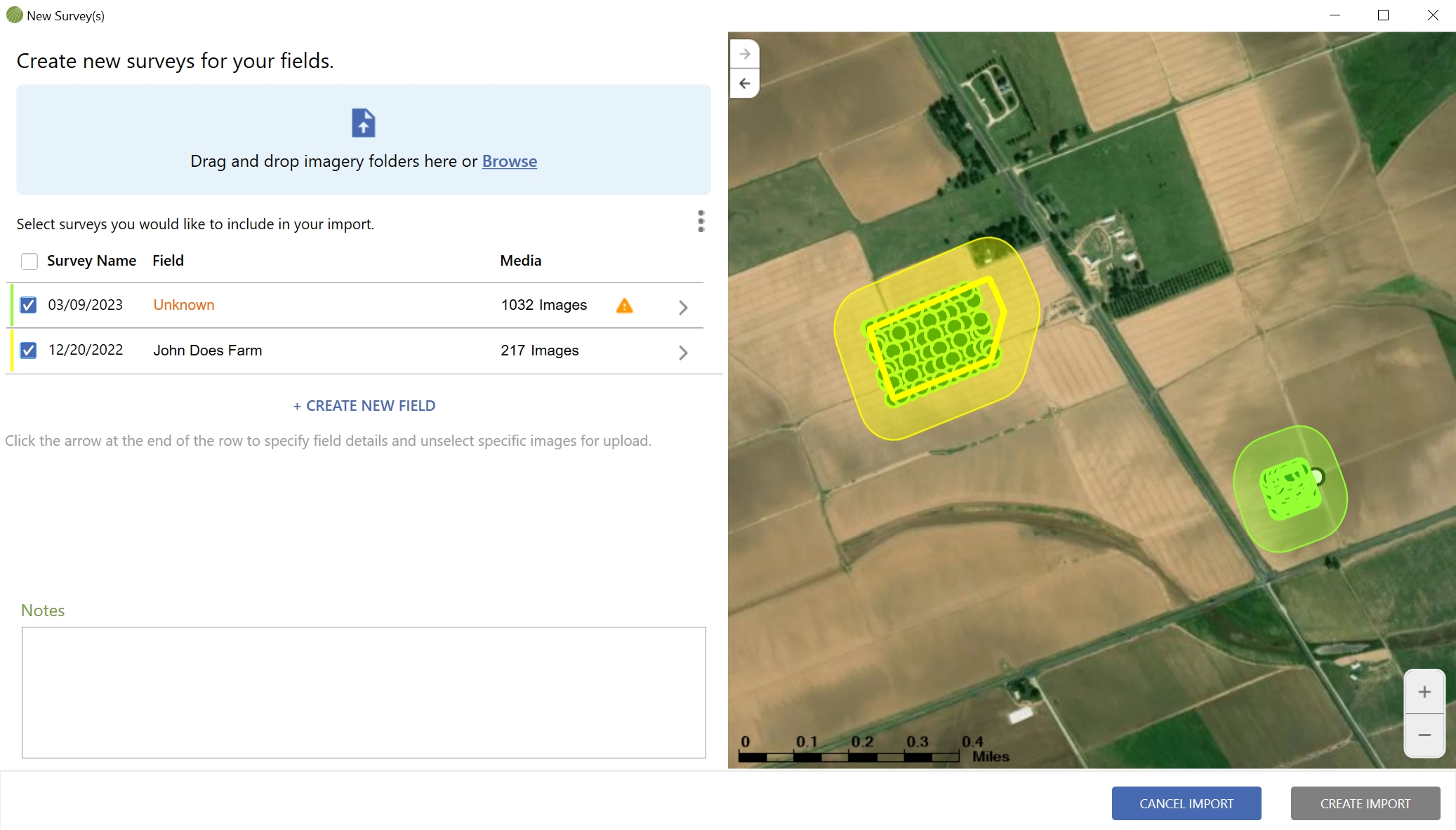 Importing into FieldAgent on Desktop does not require a previously created Field Boundary and allows users to import into multiple fields at once.