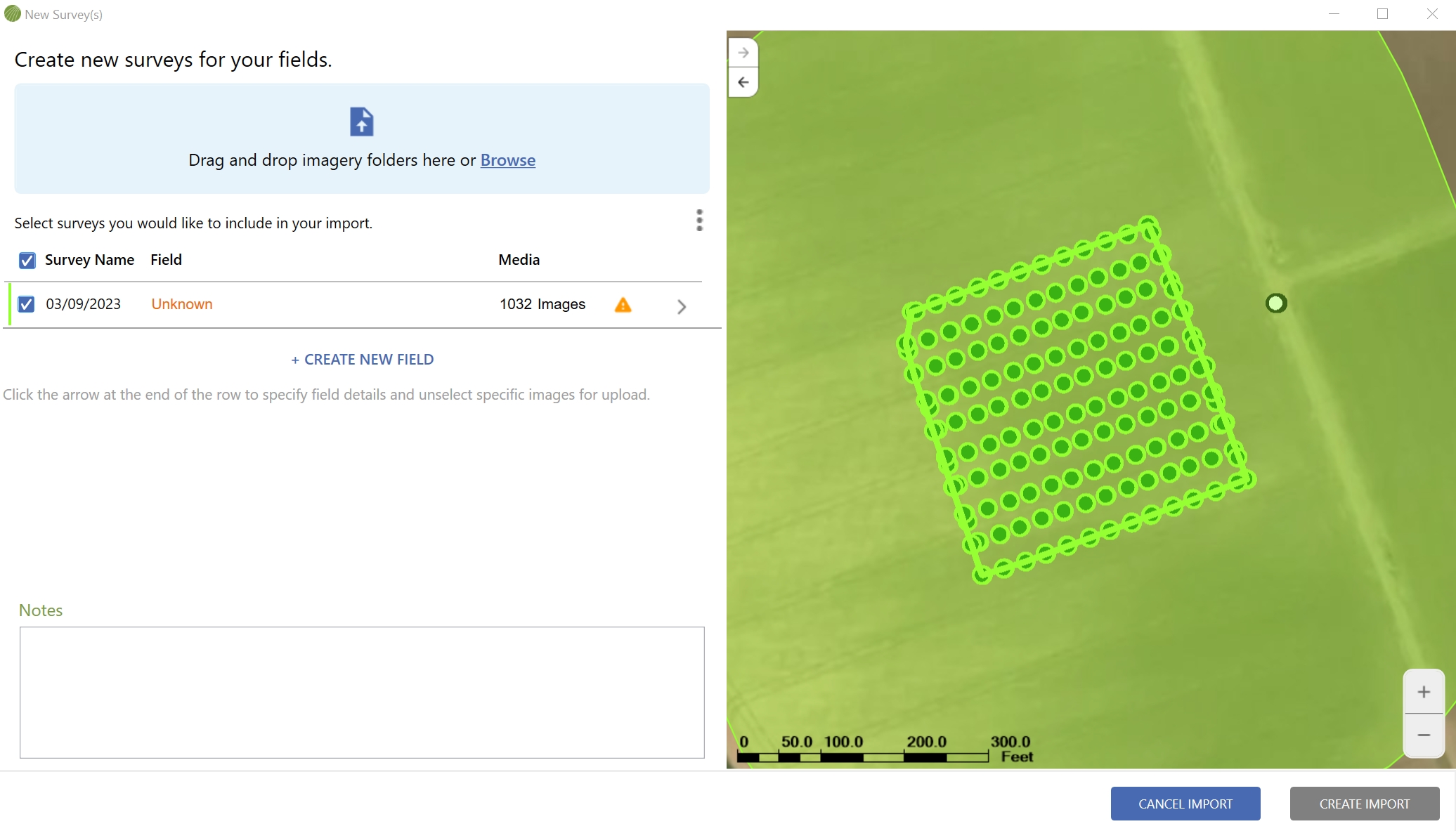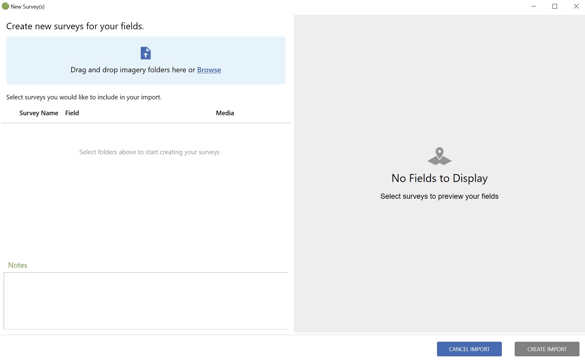3. Optionally, add notes at the bottom of the page. These notes will be connected to every survey imported in this session.