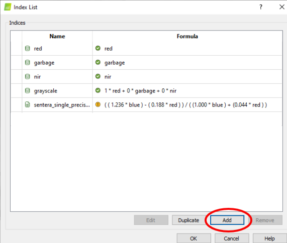 5. Give the index a meaningful name. Keeping in mind if this is an NDVI or NDRE sensor. For example, Single Sensor NDVI.